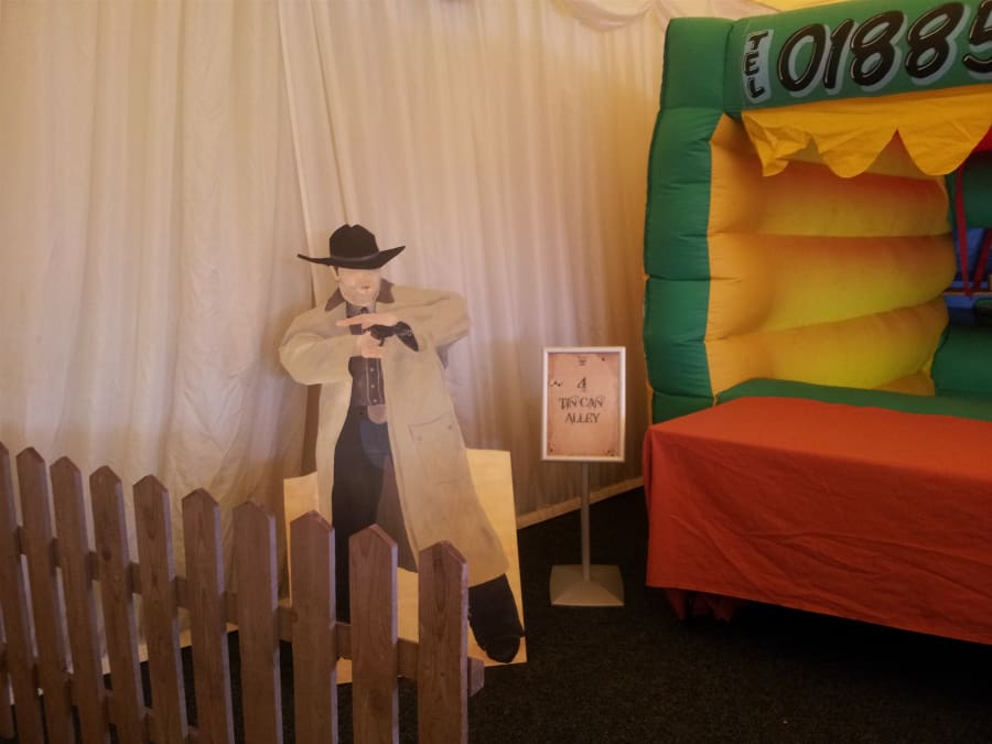 Cowboy gunslinger cutout or cowboy on a horse silhouette which we could add a red uplighter to make it look like the cowboy had a sunset behind him.
