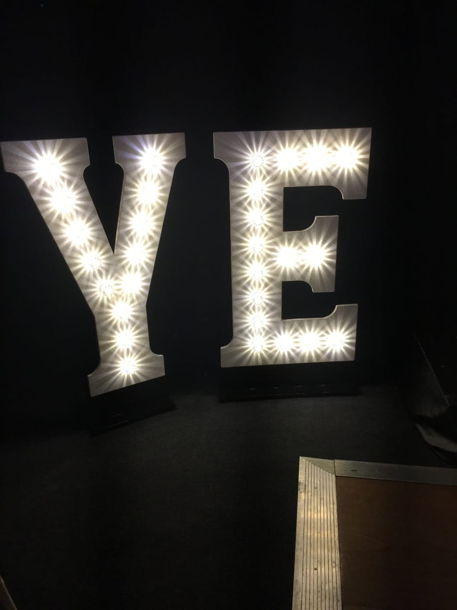 Our YE HA light up letters are low voltage LED bulbs. They stand 4ft tall and sets off any stage Low level Portable stage Hire or event.