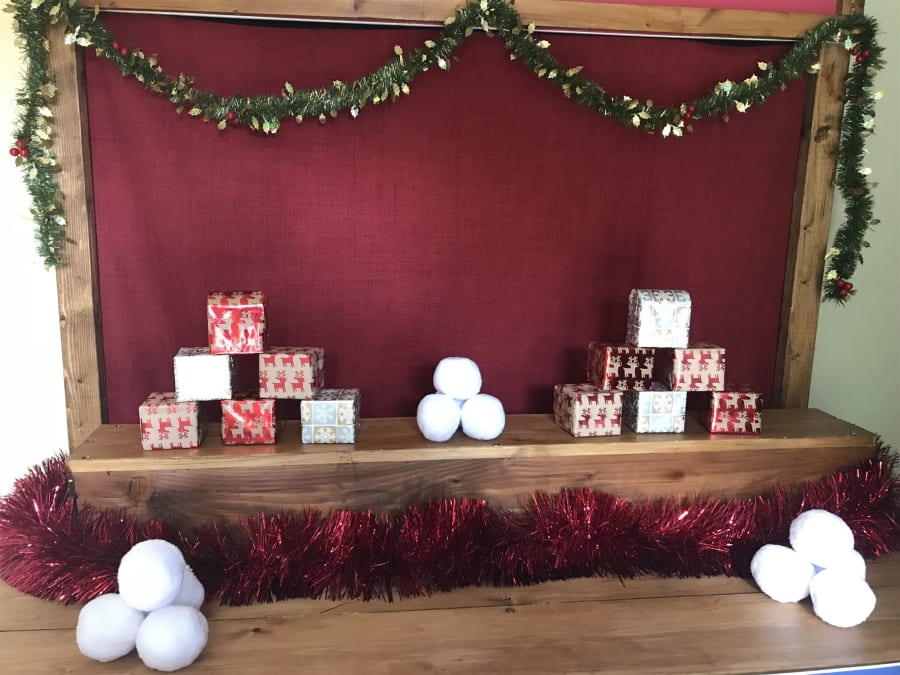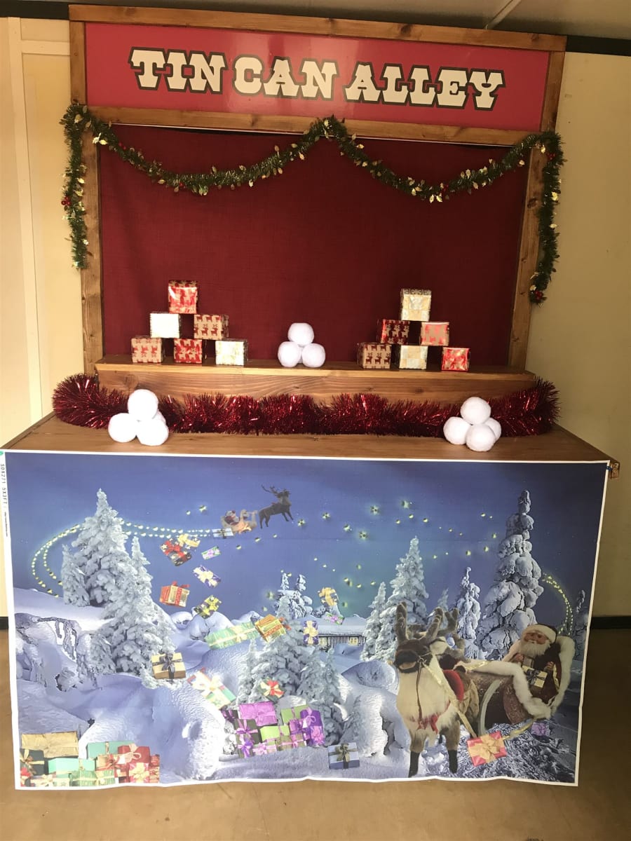 Our Christmas theme version of the fair ground side stall tin can alley is Present alley. Try and knock all the presents off the shelve with snowballs, not has easy has you may think. This christmas side stall game is suitable for all christmas parties, corporate xmas events or christmas light switch ons in places like Somerset,hampshire & Gloucestershire.