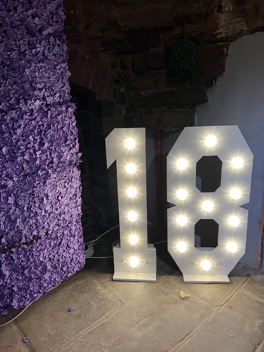 Our range of beautiful 4ft giant letters Our giant light bulb signs are perfect for any themed wedding – they can literally light up your venue! For example, use our ever popular MR and MRS light up letters, you and your partner’s initials or a illuminated LOVE sign to create WOW factor. We also offer number light up letters like 40, 21,50 , infact what ever number you like.