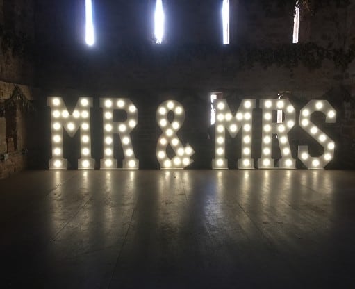 Make a statement at your next event with our 4ft light up letters and numbers! Perfect for weddings, birthday parties, proms, and any other special occasion, these eye-catching decorations will add a touch of glamour and excitement to your venue. We could supply MR & Mrs , LOVE or initials.