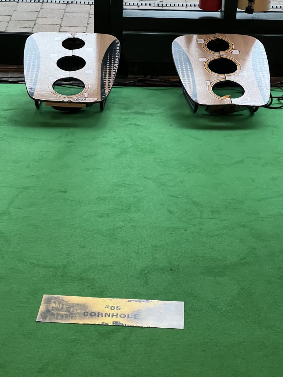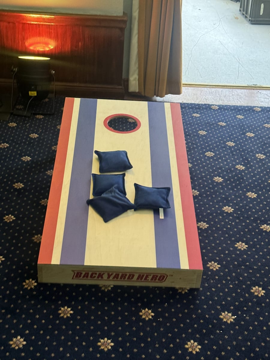 This games comes from America, a simple game of tossing the corn bag into the holes on the target.