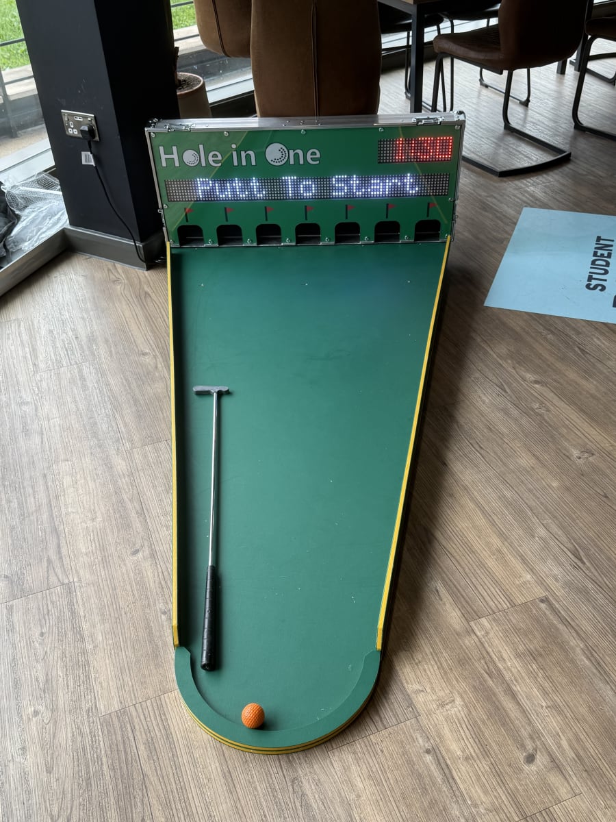 Games hire Hole in one golf game hire in Herefordshire, Worcestershire, Gloucestershire, Shropshire, Nottinghamshire, Birmingham, Bristol, Wales, London, Derbyshire, Wiltshire, reading, Staffordshire, and nationwide across the uk. Exciting, easy to run and built for throughput, Hole In One delivers quick competitive play for any event. Ideal for corporate events, weddings, student events and birthday parties. π