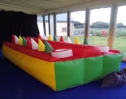 Great new Team Building Game. 2 Teams compete at the same time. The whole team has to exchange the floating balls along the air stream. Good communication, trust & team work are required.