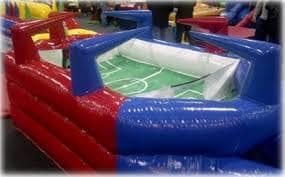 Giant Blow Football hire all over the uk for corporate events and football parties. Great competitive game for 2 teams of players, each team has air jets positioned arround the top of the table, by directing the air flow they blow the football around the pitch. As with any game of football the winning team is the team which score the most goals