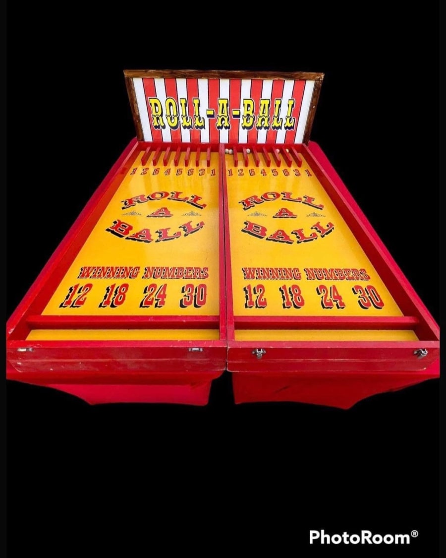 roll a ball hire in London, Birmingham, Oxford, and all over the U.K. Roll a ball is a traditional fairground game where Each person has to roll 6 balls into the numbered slots. The player has to try and match the total score to the winning numbers to win.