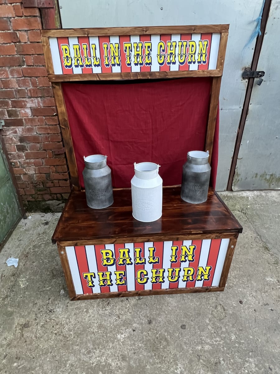 Ball in the churn fairground game to hire in London, Birmingham, Bristol and all over the U.K. The milk churn side stall is a Ball in the churn fairground game to hire in London, Birmingham, Bristol and all over the U.K. The milk churn side stall is a challenging game of just getting a ball in the churn.game of just getting a ball in the churn, sounds easy but it can be challenging.
