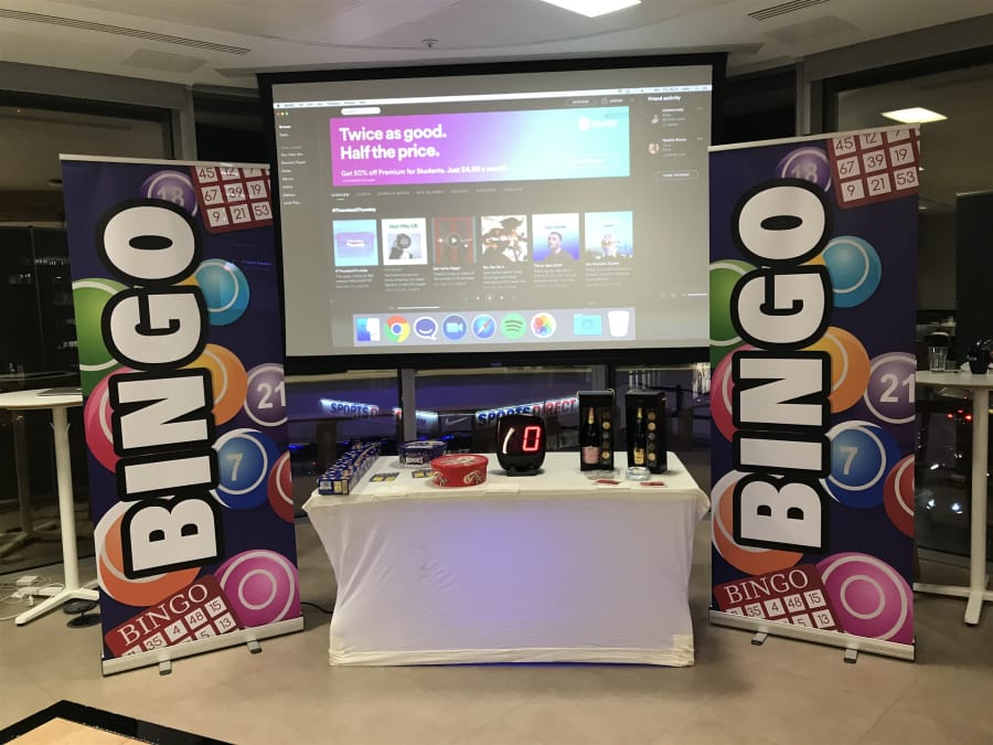 With our Bingo hire, we can turn your indoor event, office, function room or conference venue into a prize bingo hall in minutes. Our Bingo hire packages are supplied complete with bingo caller, pull up bingo branding, bingo cards, dabbers, PA system and bingo machine. All you need to supply is the bingo players and bingo prizes. The bingo hire is suitable for indoors or marquee use. The bingo machine requires a electric power supply.