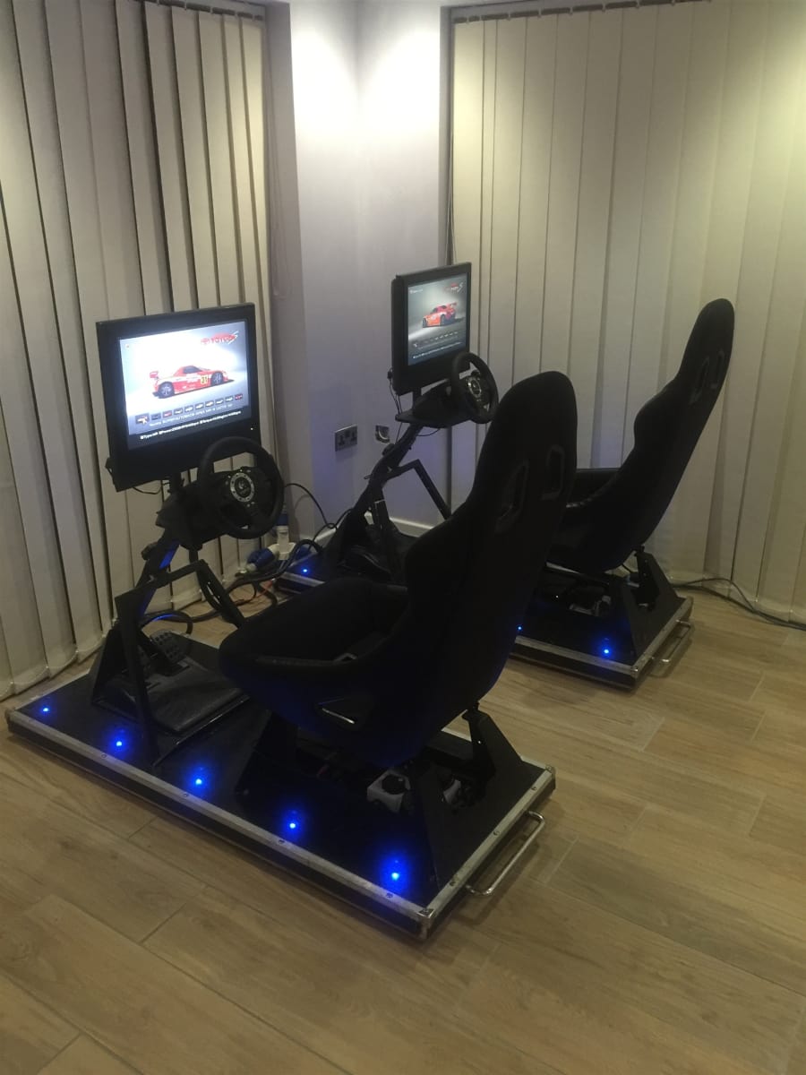 Masses of Fun Our Linked Racing Simulators feature up to four virtual racing cars together for head to head racing on the same track at the same time, you can see one another through your individual LCD monitor, you can overtake, you can bump into one another, you can even see each other in your rear view mirrors. Much more up to date and much more flexible than Arcade Racing Car Simulators Fast, efficient set up and get out times, full technical support and a wide range of staffing options Precision, power driven steering wheels and sensitive pedals, we do not fit the cheapest, we do fit the best, we want our Racing Car Simulators to impress you, not remind you of something you have at home.