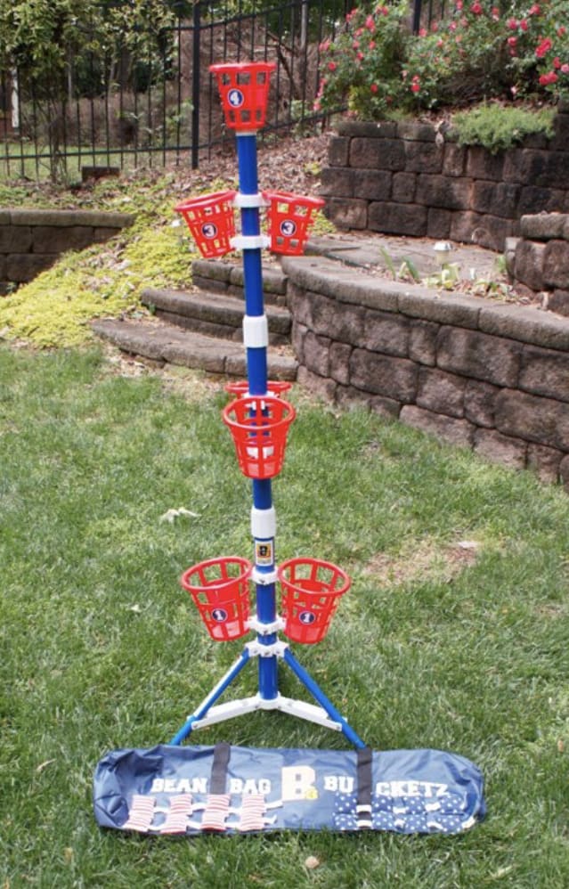 EASY TO PLAY: Throw 16 Bean Bags per round at buckets worth one to four points each and play to 21
